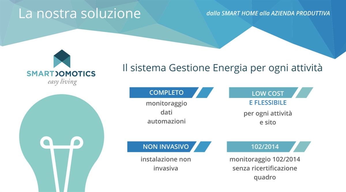 - disponibile in modalità “IoT Evolution”, con reportistica e cloud open 4.0, la soluzione Smart Domotics per Digital Energy & Energy Management System